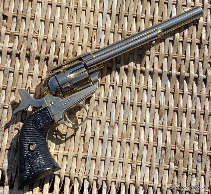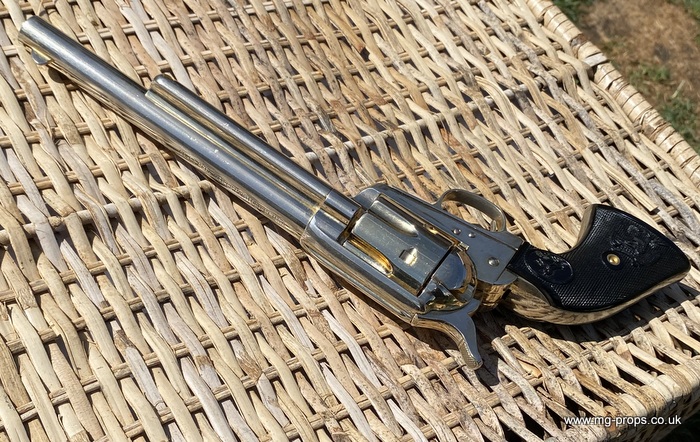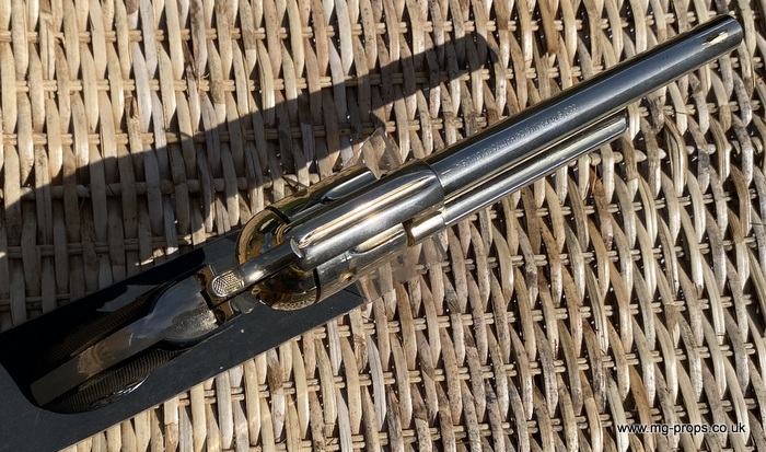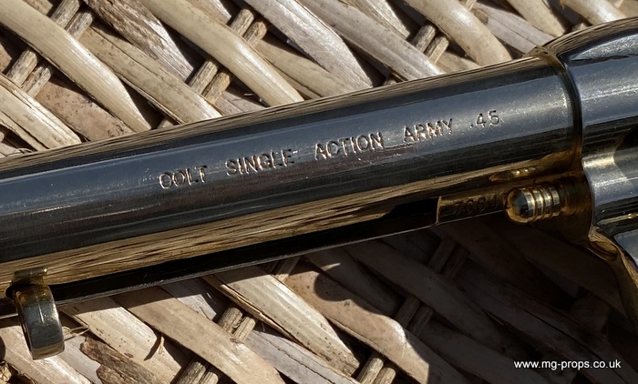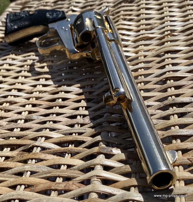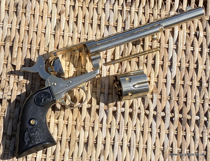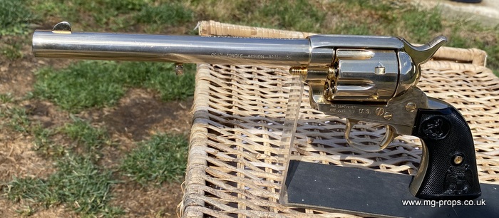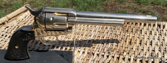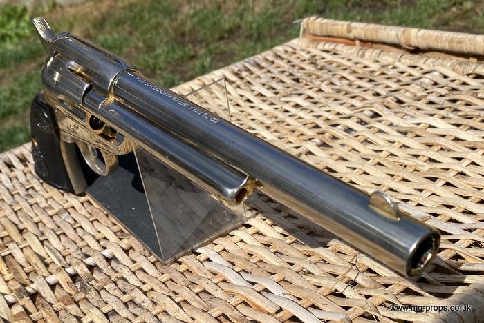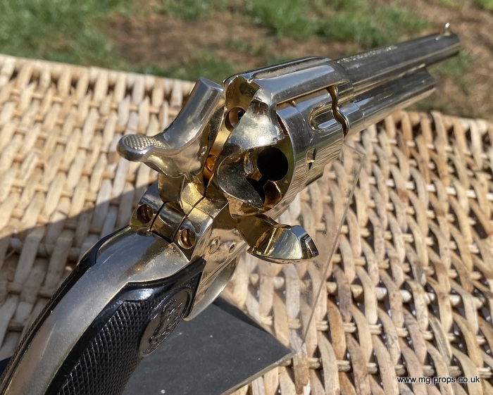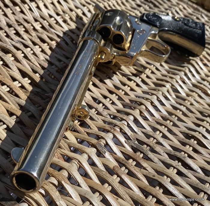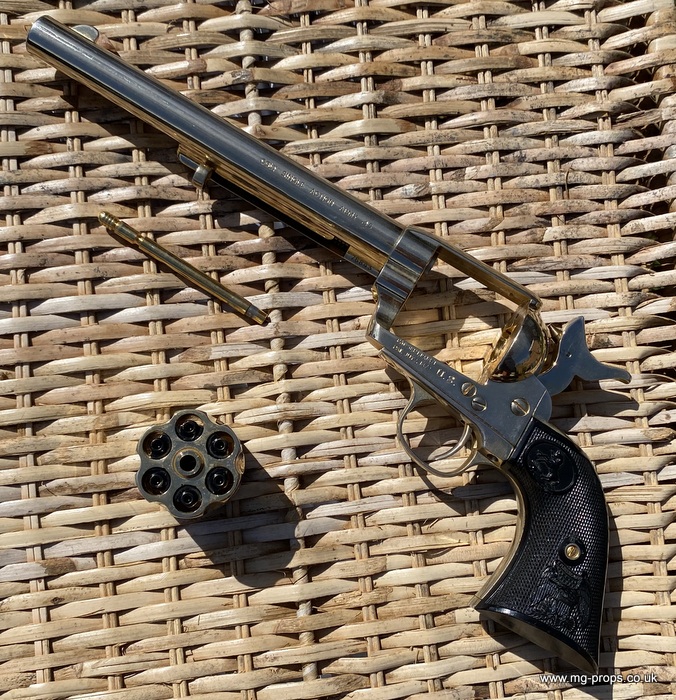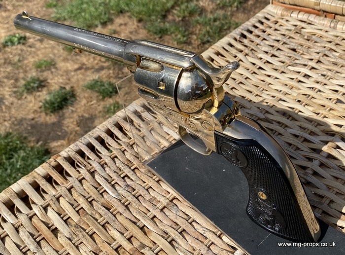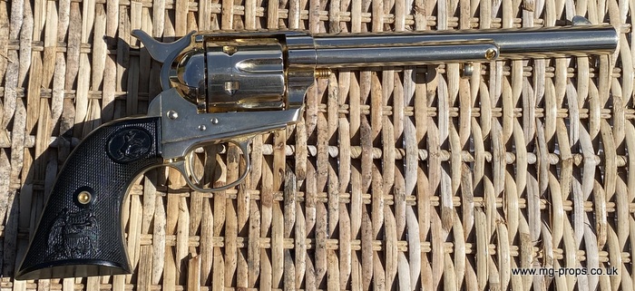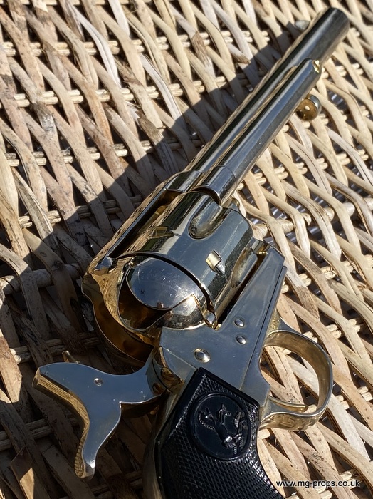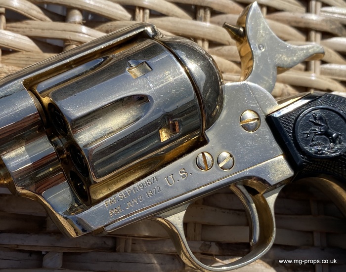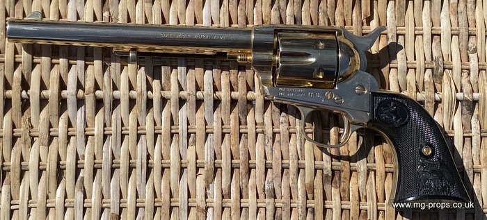 Kokusai Colt's Classic (old model) : COLT S.A.A. .45 Cavalry Serial # 76843 Serial number is stamped on the body and trigger guard section as seen in photos above ALL Metal. Includes: Copy of original instructions. No original box. Functions, strips like the real thing! Weight approx: 1.1 Kilogram Barrel Length approx: 7 1/2" Vents from chamber Original gold finish, can be easily polished to reveal super chrome finish or blued In very good condition, works great!! Photos above of actual revolver for sale Firing model (optional firing cartridges available / below) We ship Internationally. Please ask for shipping quote : sales@mg-props.co.uk UK Customer this item is VCRA exempt. PFC Primer caps: £9.50 per box (1 box = 100 PFC caps) These are what makes the bang and smoke Real Wood Grips :