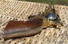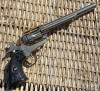Brief info on COLT S.A.A. .45 Revolvers Colt SAA revolvers have been produced as Single Action Army and Buntline models . . . standard models have a round top frame . . . barrel lengths are 4 3/4, 5 1/2, and 7 1/2 inches. The Buntline model came with a 12 inch barrel but was otherwise similar to the regular SAA. The SAA uses a hammer mounted firing pin, and a loading gate in the left side of the frame gives access for loading and unloading. The steel ejector rod housing is located on the lower right side of the barrel, aligned with the loading gate. The fluted cylinder is easily removed for cleaning . . . and can be removed from the right side of the frame. To eject fired cases from a Colt single action revolver, the hammer is put in its half-cock position . . . the cylinder is manually rotated . . . so that a stroke of the spring loaded ejector rod can knock out the case. Loading is likewise accomplished one chamber at a time |