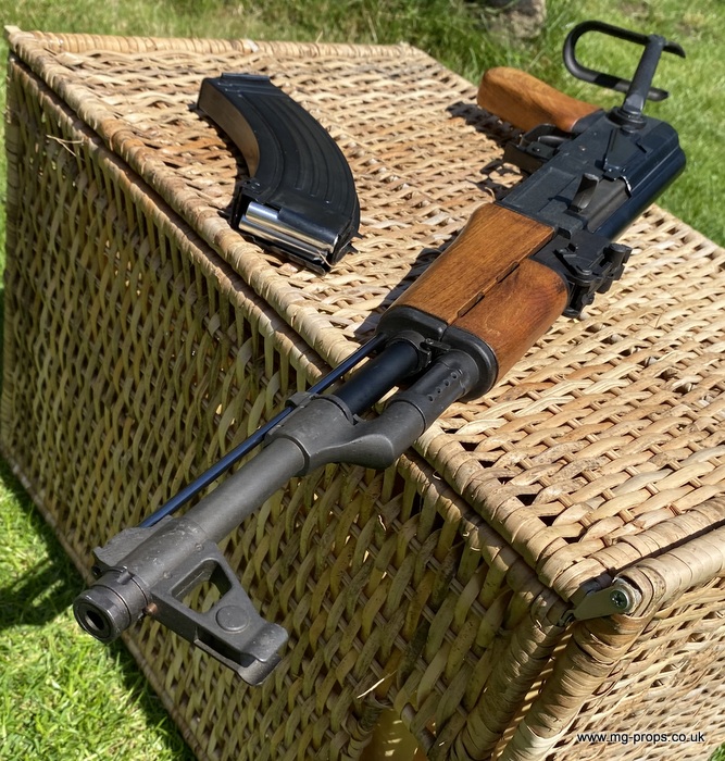 Hudson AK47 FS (Folding Stock version). Very Last Version made - with Lightweight Aluminium cartridges. Best version Hudson made In excellent condition throughout. Appears unfired ! Photos above of actual AK47FS for sale Boxed with copy of original instructions, 5x Lightweight Hudson 7.62mm Firing Cartridges in unfired condition (cartridges take 2x 7mm PFC Primer cap/not included), All metal with real wood grips. Functions / field-strips like the real thing ! Can take genuine AK47 magazine No longer produced this iconic folding stock version of the AK47. We ship international with full online tracking and parcel contents insurance. Please ask for a shipping quote Any questions please email: sales@mg-props.co.uk