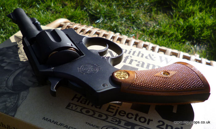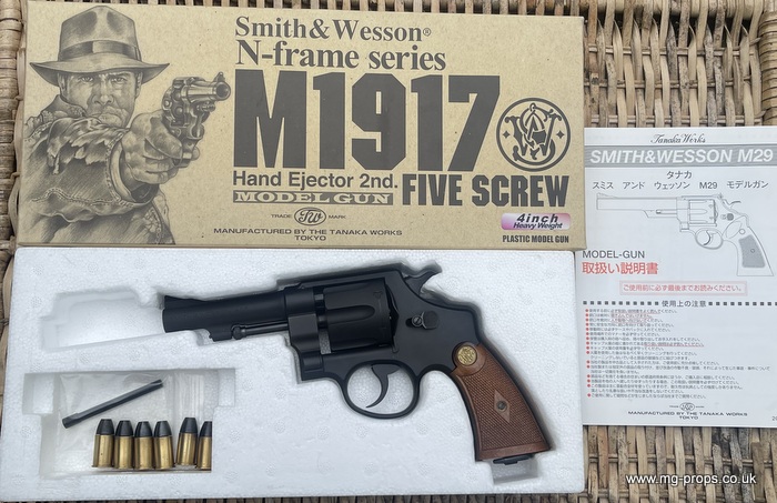 In very good condition / unfired. Boxed with instructions 6x Tanaka .445 firing cartridges (reusable). Black finish - 4inch barrel Heavyweight version N-Frame series, double action with swing out cylinder and lanyard ring. Full Smith&Wesson markings. Heavyweight version : Weight empty: 530g Weight loaded: approx. 660g Constructions: heavyweight Abs and metal parts Open barrel for venting smoke The M1917's revolvers used during WWI, WWII, Korean and Vietnam wars and not forgetting used by Indiana Jones ! We ship internationally. Any questions please ask away: sales@mg-props.co.uk PFC Primer caps: £9.50 per box (1 box = 100 PFC caps) These are needed to make the bang and smoke!