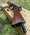 Side cocking handle, safety selector, selectable fire: