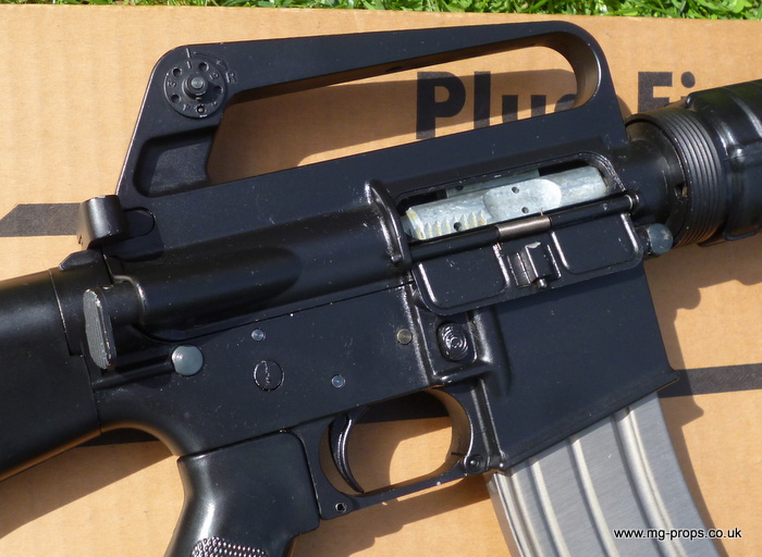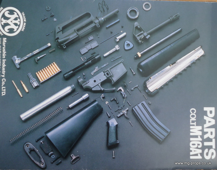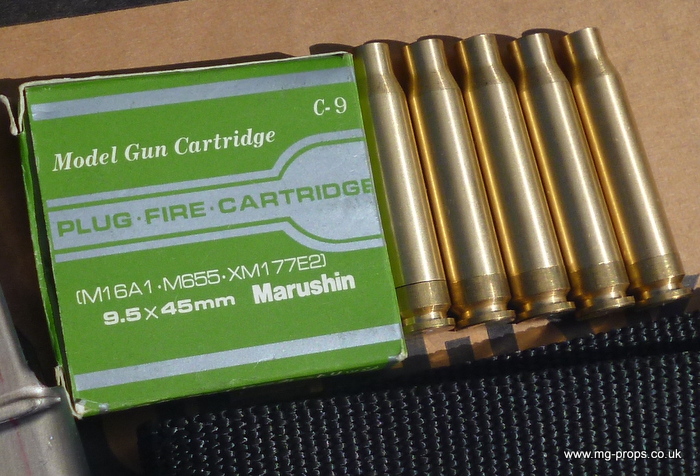 Marushin : Colt M655 Carbine : Shell ejecting blowback replica. Made April 1980 and in very good condition throughout. Appears unfired !! This is the factory built version and includes: Original box (a bit tatty), Original instructions and sales literature. Marushin 30rd magazine, 5x Marushin 5.56mm reusable blowback cartridges (in brand new condition), black nylon carry sling. This replica is engineered precisely like the original, and also operates like the original in every way, such as loading, chambering and ejection of rounds, magazine loading and removal, stock aperture (for holding a cleaning kit), adjustable sights, semi/ full auto and safety selector, movable forward assist, fires on both Full and Semi auto. Can be field striped EXACTLY like the original. It locks, loads, cocks, fires and ejects. Weight unloaded: 2.6 Kg Firing mode: Semi & Full Auto We ship internationally. Any questions at all please ask away : sales@mg-props.co.uk For full range of accessories please see : M16A1 Accessories