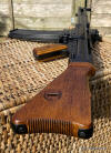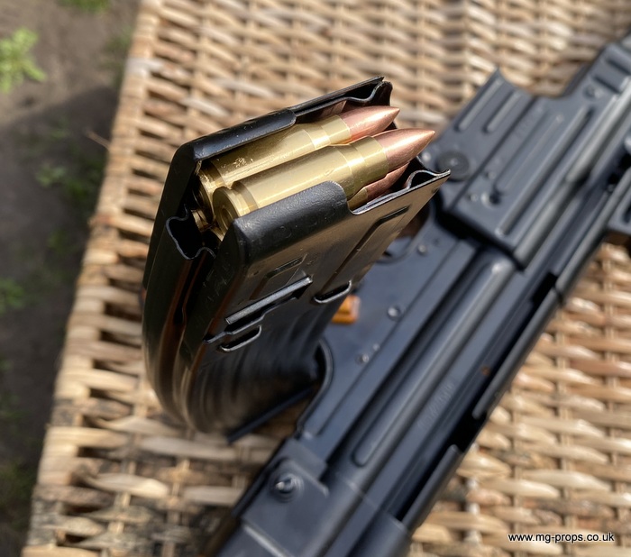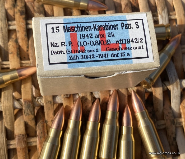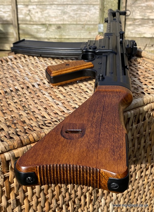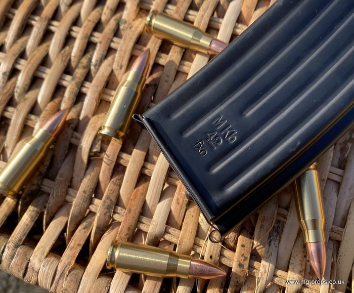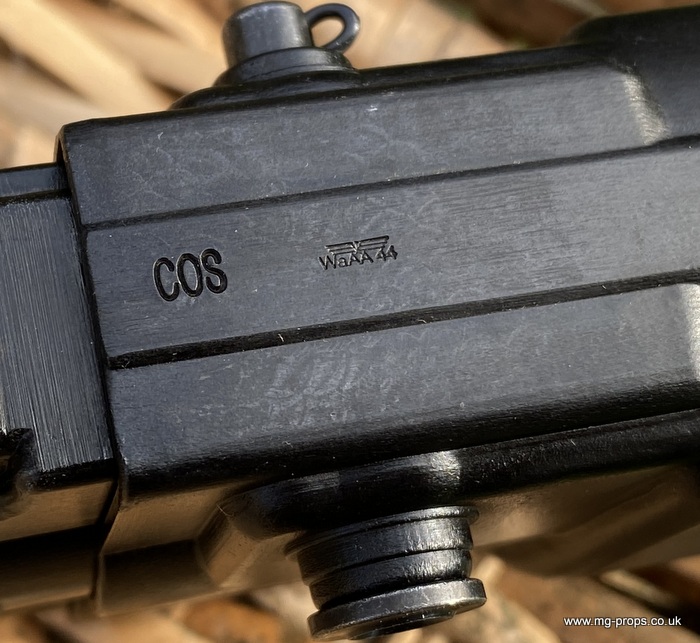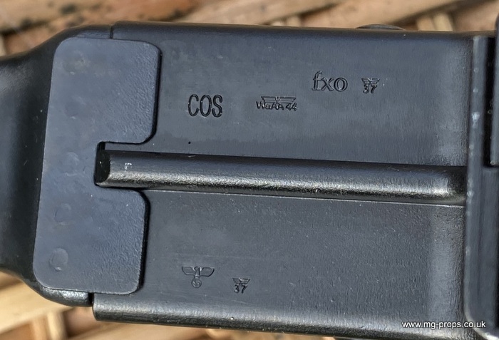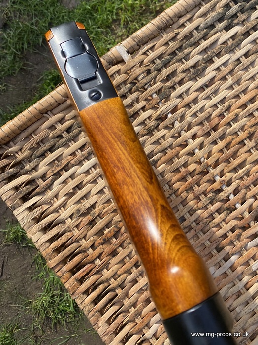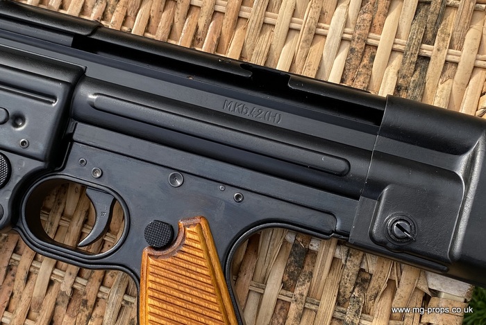Extra cartridges and magazines available with sales or after sales. Superb quality, indistinguishable from the real thing, ideal for collectors, re-enactors, museum, living history, film or theatre We ship to internationally. Please ask for a shipping quote: sales@mg-props.co.uk Brief info on the Mkb42(H) This weapon, known as a worlds first assault rifle, was developed in Hitlers' Germany during the World War Two. Initial development took place under the designation of MKb.42 - MachinenKarabine, 1942. The experimental MKb's were developed by two German companies, Karl Walther (MKb.42(W)) and C.G.Haenel (MKb.42(H)). Both guns were intended as a replacement for submachine guns, bolt action rifles and, partly, light machineguns for front troops. Both guns were designed to fire intermediate (between rifle and pistol) cartridge, and have effective range of 600 meters or so. The 7.92mm Kurz cartridge, developed by Polte company, propelled 8.1 g (125 grains) bullet to roughly 680 meters per second. After initial trials the MKb.42(H), designed by Hugo Schmeisser, was found superior of two, and further development took place under the name of MP-43 (MachinenPistole, 1943, to avoid Hitlers opposition to made anything but SMGs). Some MP-43s were issued to troops at western front, and field reports were very promising. Final version appeared under the designation of Mp-44, and then Hitler finally approved it, but the new gun received also a new designation - SturmGevehr-44, which stands for no more than "Assault Rifle" in german language. This was pure act of propaganda, but the name stuck not only to that gun, but to the whole new class of automatic weapons, designed to fire intermediate cartridges. Total number of MP-43s, MP-44s and StG.44s produced was about 500 000, and these guns proved itself as very effective,