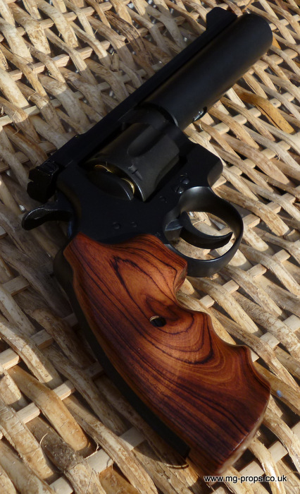 Looks great displaying with your .357 Magnum Leather Hip Holster: €49.10 Euro / 38.95 GBP Very good condition Kokusai leather hip holster. Takes 6in barrel revolvers Leather Shoulder Holster: €58.70.10 Euro / 46.95 GBP Very good condition Kokusai leather shoulder holster. Takes 6in barrel revolvers Real Wood Grips & Pachmayr grips: Please ask Lockable Aluminium Storage / Carry Case: €30.45 / £22.95 Great for storing or safe transport. Foam lined and lockable. We ship Internationally, please ask for shipping quote : sales@mg-props.co.uk Any questions please ask away.