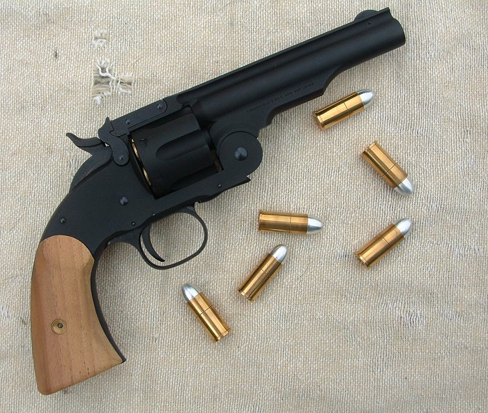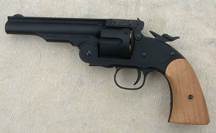 Brief info on the S&W Schofield Smith & Wesson Schofield (S&W No3) The 45 caliber Smith & Wesson Schofield revolver was manufactured from 1875-1878 with just under 9,000 of these big six guns being manufactured. The revolver took its name from Major George W. Schofield of the 10th Cavalry. About 1870 he wrote to Smith & Wesson requesting one of their then-new "Model No. 3" revolvers, hoping it would prove useful in combat. Schofield made his own modifications to the Model No. 3 to meet his perceptions of the Cavalry’s needs, and in 1875 Smith & Wesson incorporated these refinements into a design they named after the major, planning to obtain significant military contracts for the new revolver. As a "top-break" revolver, the 1875 Schofield could be loaded much faster than other sidearms of the day. With the barrel latch released, the barrel could be pulled down and the spent cartridge would be ejected. Schofield’s design relocated the barrel latch from the barrel to the frame, and as a result, a shooter could operate the latch with his thumb and open the gun for loading and unloading with just one hand. With practice, a shooter could refill all the chambers at once without looking, and do it in about 26 seconds. This was a distinct plus for a mounted soldier, and provided the Schofield with a clear advantage over the 1873 Colt "Peacemaker The vast majority of the Schofields sold went to the US Army, as replacements for the 1873 Colt, and many of these saw service in the Indian Wars, with reports of them in use as late as the Spanish American War and Phillipine Insurrection The Top-break Smith and Wesson's were much more successful with the civilian population. The long list of notables on both side of the law that favoured the Smith & Wesson is amazing. Some of the outlaws are: Frank and Jesse James, Cole and Jim Younger, Charlie Pitts, John Wesley Hardin, and Bob Ford. Some of the lawmen and scouts that favoured the S&W are Texas Jack Omohundro, Pat Garret, Virgil Earp, Bill Tilghman, Marshal Dallas Stoudenmire, and the Indian fighter, Ranald MacKinzie of the 4th Cavalry. Even Buffalo Bill Cody, carried a pair of S&W No.3 American Models. They all liked the fast reloading firepower for which the Smith and Wesson No.3 was second to no