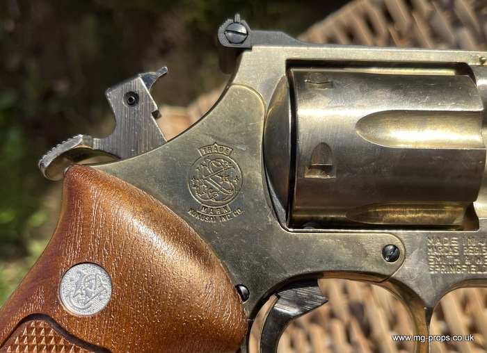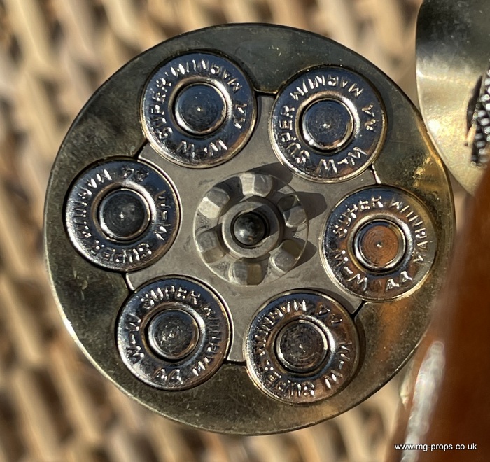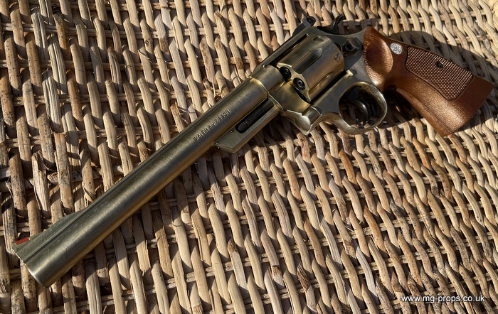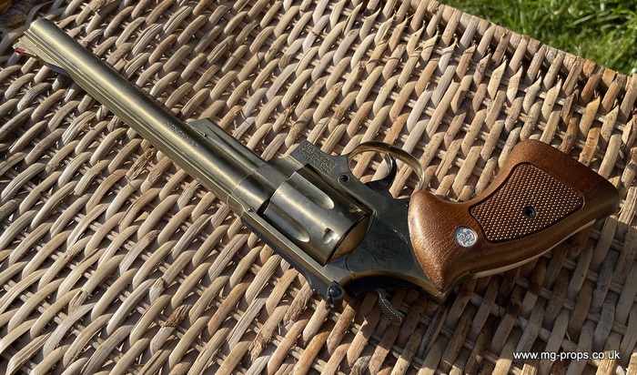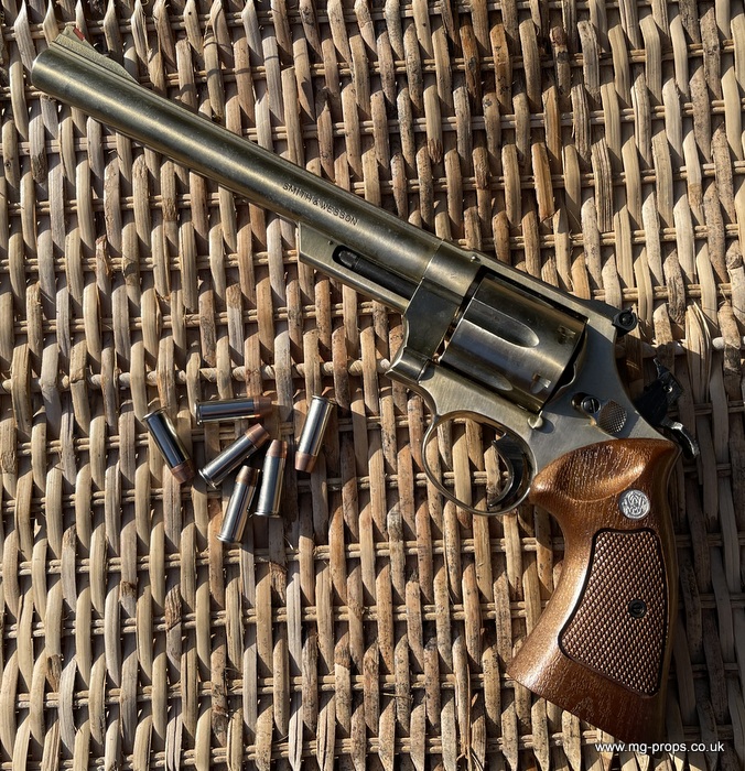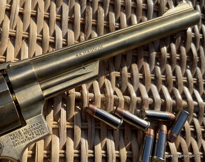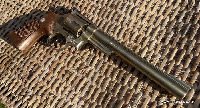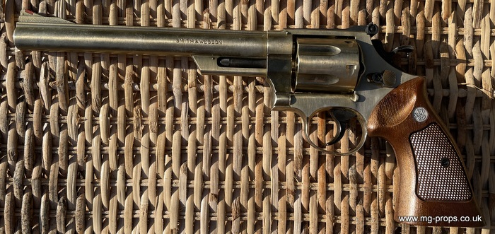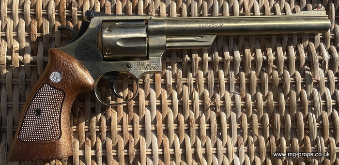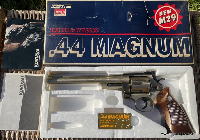 polished to reveal a silver chrome finish.. Example : Photos above of actual M29 Magnum for sale Weight: Approx. 1.4 kilogram S&W marking and logo vents from chamber 8 1/4 Inch barrel Adjustable rear sight and swing out chamber with ejector We ship internationally. Any questions please let us know: sales@mg-props.co.uk PFC Primer caps: €11.00 / £9.50 per box (1 box = 100 PFC caps) These are needed to make the bang and smoke! Kokusai : .44 Magnum Revolver Firing cartridges: £17.95 Six .44 Magnum Real Look Dummy Bullets: £22.95 Real look .44 Magnum bullets with correct marking, great for display with your .44 Magnum Real Wood Grips with S&W logo: £36.95 Altamont S&W M29 Magnum Real Wood Grips (rose colour) With S&W Logo : £42.95 Real guns grips Made in the USA by Altamont Nylon Shoulder Holster: £18.95 Nylon shoulder holster for M29. 44 Magnums / .357 Colt Pythons 2in to 8 in barrels and also S.A.A. .45