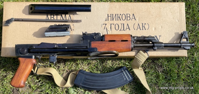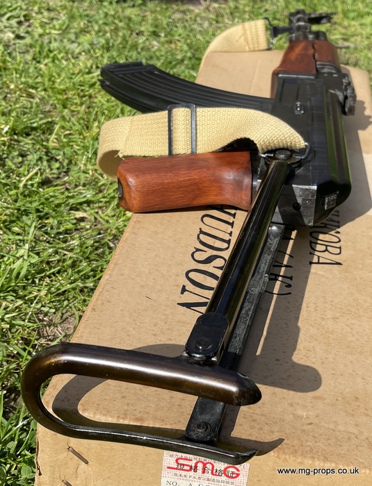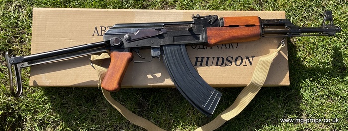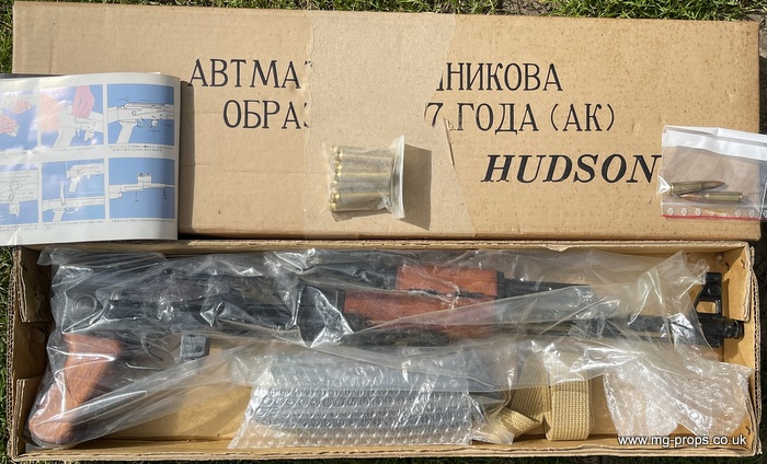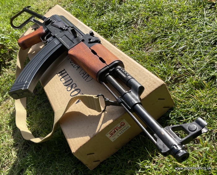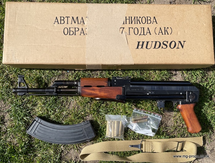 Hudson AK47 FS (Folding Stock version). Rare chance to acquire a Hudson AK47FS Made June 1981 and in excellent condition for year, photos above of actual AK47 for sale. Appears unfired and internally in very good condition, carrier bolt like new. This is the older pre PFC blowback mode and is exactly as left Hudson when new with Original box, Hudson sales literature booklet, Carry sling, 10x unfired Hudson old type blowback cartridges and 2x Dummy Bullets. Original blowback cartridges can be manually cycled / ejected. All metal with real wood grips and folding metal stock. Functions / field-strips like the real thing ! Can take genuine AK47 magazine Open barrel for venting. No longer produced this iconic folding stock version of the AK47. We ship international with full online tracking and parcel contents insurance. Please ask for a shipping quote Any questions please email: sales@mg-props.co.uk