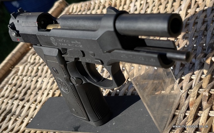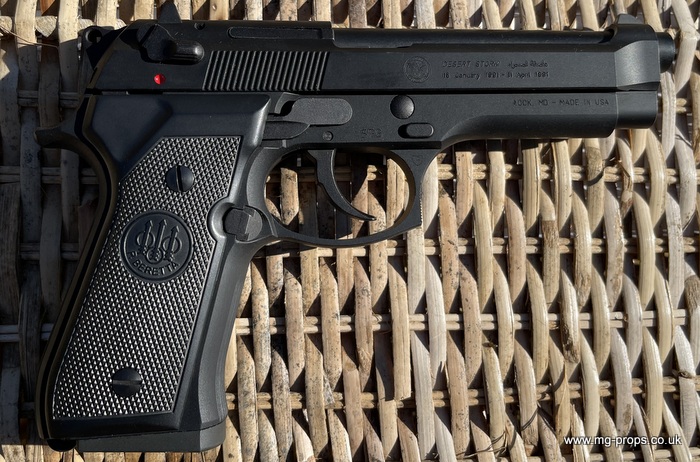 Brief Info on the Beretta M9 The most tested and trusted personal defence weapon in history. The 92FS, designated M9 by the U.S. Military, not only meets or exceeds all U.S. Military testing guidelines, it totally rewrites them. The Beretta M9 has proven its renowned reliability in several military operations: Desert Storm in Kuwait, Uphold Democracy in Haiti, Restore Hope in Somalia, Just Cause in Panama, Urgent Fury in Grenada and Joint Endeavor in Bosnia. Any questions please email: sales@mg-props.co.uk We ship internationally. Please ask for a shipping quote Special offer :