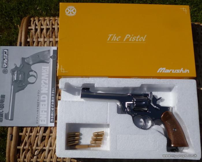 Brand new: . Includes original box, instructions, 6x unfired Marushin .38 cal cartridges (reusable) double action revolver Made from Heavy Weight abs and metal parts Weight approx 550 grams loaded Open barrel for venting smoke and sparks Enfield No.2 Mark 1 were developed in the late 1930s for British Tank Corps throughout WWII and later by the British, Canadian and Australian armies We ship internationally, please email for a quote or any questions: sales@mg-props.co.uk PFC Primer caps: €11.00 / £9.50 per box 1 box = 100 PFC caps) These are what makes the bang and smoke ! Lockable Aluminium Storage / Carry Case: €30.45 / £22.95