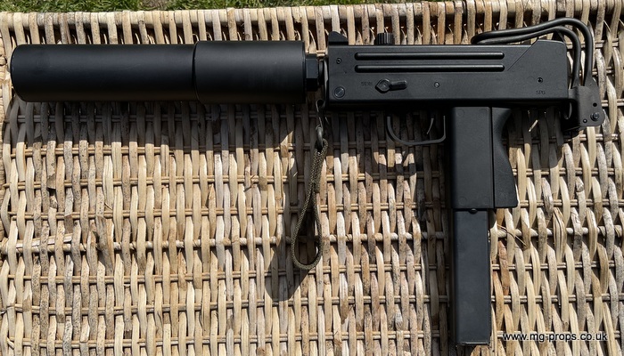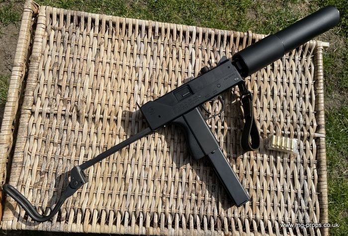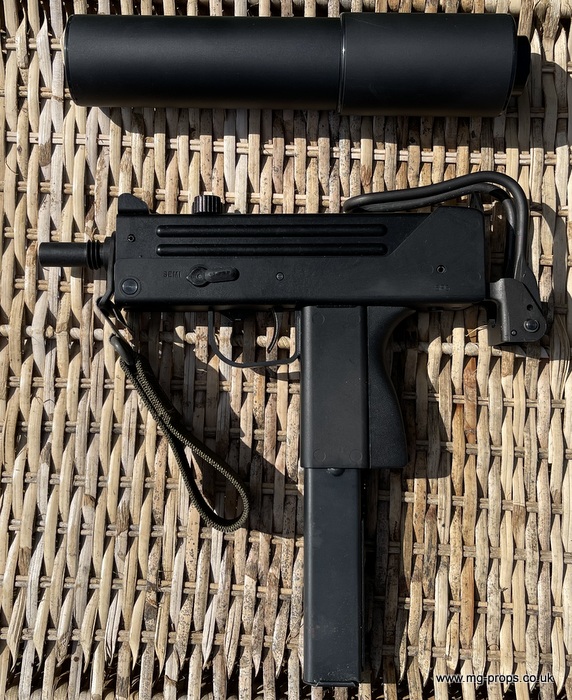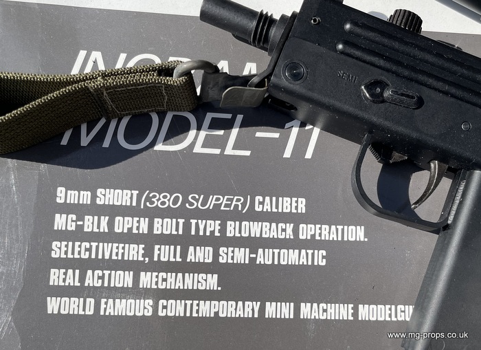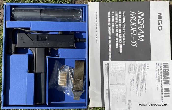 All black version. In excellent condition throughout, practically brand new.. !! Cobray snake marking, heavyweight model Includes: Original box original instructions. Carry strap, 10 new / unfired MGC 9mm blowback cartridges, 32rd magazine, Metal M11 Screw on Silencer Selective Fire Mode: Semi & Full Auto : Made from heavyweight abs and metal parts this will empty a mag in seconds (just like the real thing) with sparks and smoke out the barrel and brass cartridges flying everywhere!! (see videos below). Would make a great Theatre or Movie prop gun. Can be field stripped like the real thing ! Weight approx. 1.2kg : with silencer / empty magazine We ship internationally, please ask for a shipping quote: sales@mg-props.co.uk