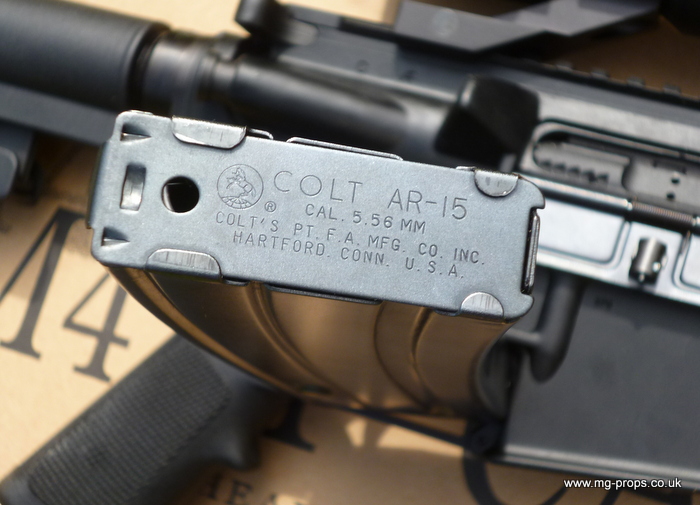 Brief Info on the COLT M4A1 CARBINE The M4 Carbine is an extremely accurate and effective weapon under all practical field applications. It is a favourite with both first line infantry operations as well as special forces, unit commanders and vehicle crews. Available with a Safe/Semi/Full Auto 3-position selector (model R0977), the M4 Carbine is today’s weapon of choice. The M4 Carbine features a redesigned 4-position sliding buttstock allowing it to adapt to soldiers of different sizes and physical characteristics as well as various firing positions or clothing variations. Almost all mechanical components are interchangeable with those of the M16 Rifle, ensuring quality, commonality of parts and reduced maintenance costs. The M4 Carbine barrel is designed to accept the M203 Grenade Launcher which can easily be assembled to the carbine offering the user both point and area firing capabilities. Also, all US and NATO rifle grenades can be fired without any supplementary equipment. This weapon was intended to replace in service some M9 pistols, as well as some aged M3A1 Submachine guns and some M16A2 rifles. New weapon was much more handy and comfortable to carry, than the long M16A2 rifle, so the US Special Operations Command (SOCOM) put its eye on the M4 as a possible universal weapon for all Special Operations community.For this purpose M4 was latter modified with the M16A3-style flat-top receiver with integral Picatinny-type accessory rail instead of the M16A2/M4-type integral carrying handle. The other change in the M4A1, when compared to M4, is that its trigger unit is modified to fire full-auto instead of the three shots bursts. Specially for the SOCOM M4A1s US Naval Surface Warfare Center developed a SOPMOD M4 Kit, that consisted of the M4A1 carbine equipped with Rail Interface System (RIS) instead of the standard handguards. The kit also includes a variety of the add-on goodies, such as various sights (ACOG 4X telescopic, ACOG Reflex red-dot, detachable back-up open sights), laser pointers (visible and infra-red), detachable sound suppressor (silencer), modified M203 40mm grenade launcher (with shortened barrel and improved sights). The kit also included a detachable front grip and tactical light.