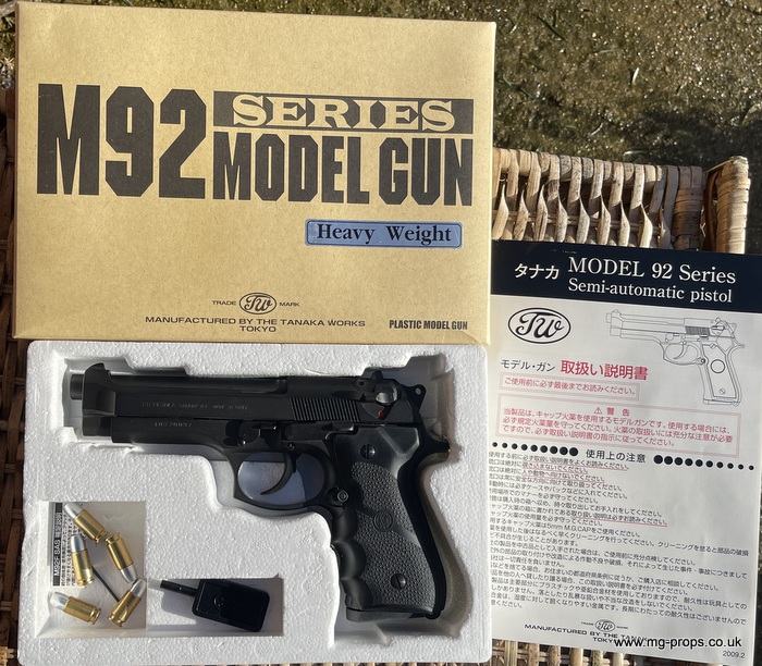 Beretta M92FS Italian Commercial Model 9mm Heavyweight with Hogue Real Gun Grips In very good condition throughout / unfired. Includes: Original box, original instructions 5x unfired Tanaka 9mm reusable blowback cartridges and 15rd magazine Heavyweight version, very nice weight and feel to it