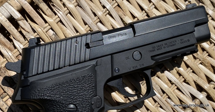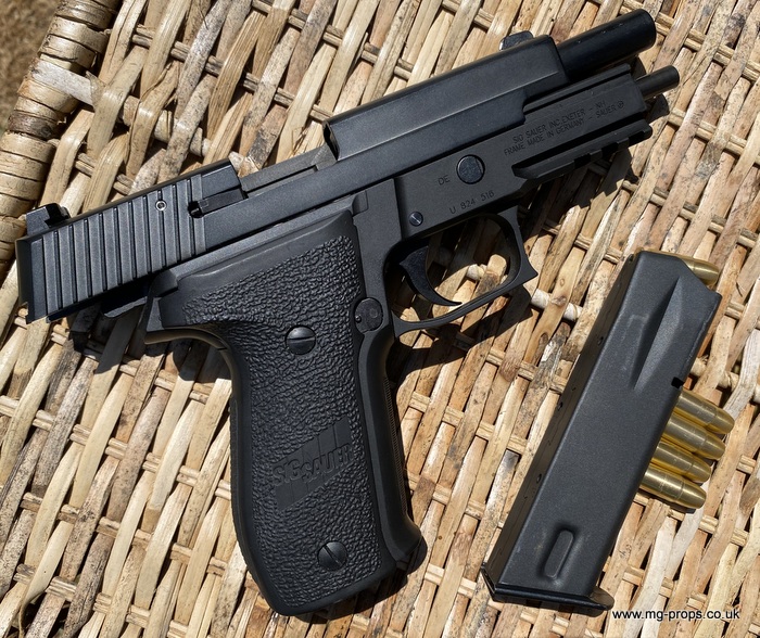 We ship internationally: Please ask for a shipping quote: sales@mg-props.co.uk Brief info on the SIG P226 MK25 Once reserved only for an elite few, the MK25 delivers the advanced features that made the P226 the official sidearm of the U.S. Navy SEALs. The SIG SAUER P226 is the pistol that set the standard by which all other combat handguns are measured. The exceptional ergonomics and balance make this fullsize pistol easy to handle. Its longer barrel yields better ballistic performance and accuracy. The P226 MK25 is identical to the pistol carried by the U.S. Navy SEALs, the fleet's special warfare operators. The railed P226 chambered in 9mm and engraved with an anchor on the left side of the slide is the official sidearm of the SEALs.