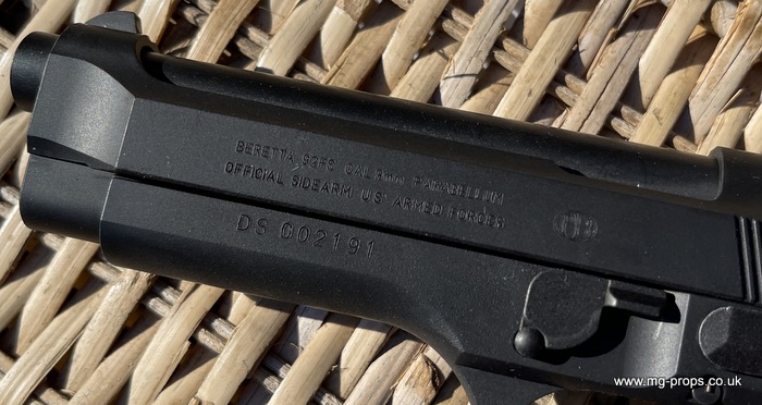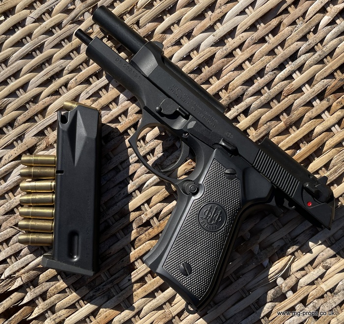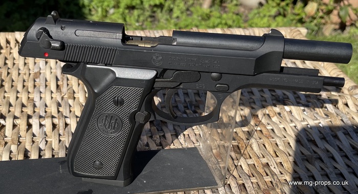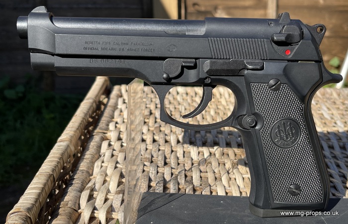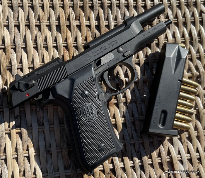 Brief Info on the Beretta M9 The most tested and trusted personal defence weapon in history. The 92FS, designated M9 by the U.S. Military, not only meets or exceeds all U.S. Military testing guidelines, it totally rewrites them. The Beretta M9 has proven its renowned reliability in several military operations: Desert Storm in Kuwait, Uphold Democracy in Haiti, Restore Hope in Somalia, Just Cause in Panama, Urgent Fury in Grenada and Joint Endeavor in Bosnia. Any questions please email: sales@mg-props.co.uk We ship internationally. Please ask for a shipping quote Special offer :