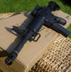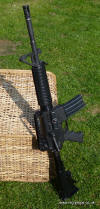 Brief Info on the COLT M4A1 CARBINE The M4 Carbine is an extremely accurate and effective weapon under all practical field applications. It is a favourite with both first line infantry operations as well as special forces, unit commanders and vehicle crews. Available with a Safe/Semi/Full Auto 3-position selector (model R0977), the M4 Carbine is todays weapon of choice. The M4 Carbine features a redesigned 4-position sliding buttstock allowing it to adapt to soldiers of different sizes and physical characteristics as well as various firing positions or clothing variations. Almost all mechanical components are interchangeable with those of the M16 Rifle, ensuring quality, commonality of parts and reduced maintenance costs. The M4 Carbine barrel is designed to accept the M203 Grenade Launcher which can easily be assembled to the carbine offering the user both point and area firing capabilities. Also, all US and NATO rifle grenades can be fired without any supplementary equipment. This weapon was intended to replace in service some M9 pistols, as well as some aged M3A1 Submachine guns and some M16A2 rifles. New weapon was much more handy and comfortable to carry, than the long M16A2 rifle, so the US Special Operations Command (SOCOM) put its eye on the M4 as a possible universal weapon for all Special Operations community.For this purpose M4 was latter modified with the M16A3-style flat-top receiver with integral Picatinny-type accessory rail instead of the M16A2/M4-type integral carrying handle. The other change in the M4A1, when compared to M4, is that its trigger unit is modified to fire full-auto instead of the three shots bursts. Specially for the SOCOM M4A1s US Naval Surface Warfare Center developed a SOPMOD M4 Kit, that consisted of the M4A1 carbine equipped with Rail Interface System (RIS) instead of the standard handguards. The kit also includes a variety of the add-on goodies, such as various sights (ACOG 4X telescopic, ACOG Reflex red-dot, detachable back-up open sights), laser pointers (visible and infra-red), detachable sound suppressor (silencer), modified M203 40mm grenade launcher (with shortened barrel and improved sights). The kit also included a detachable front grip and tactical light.