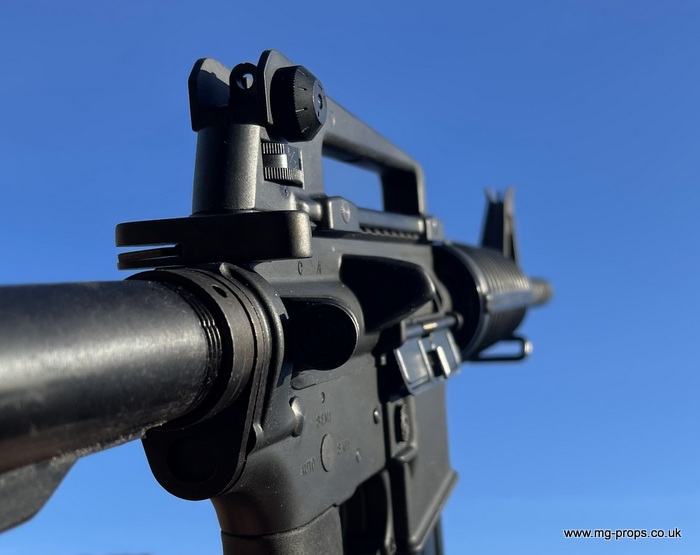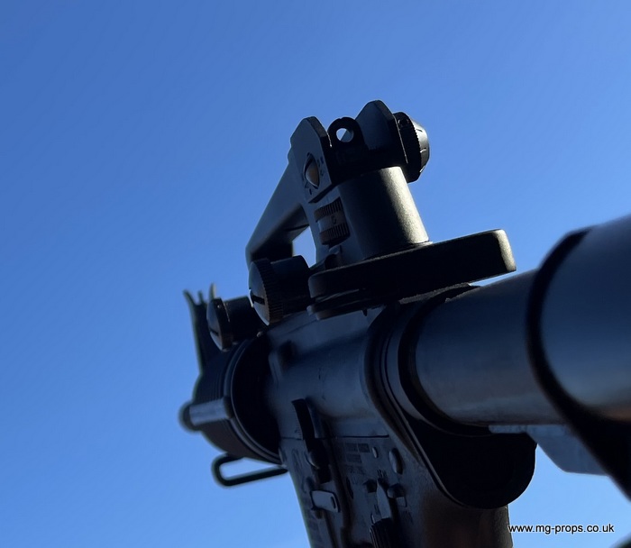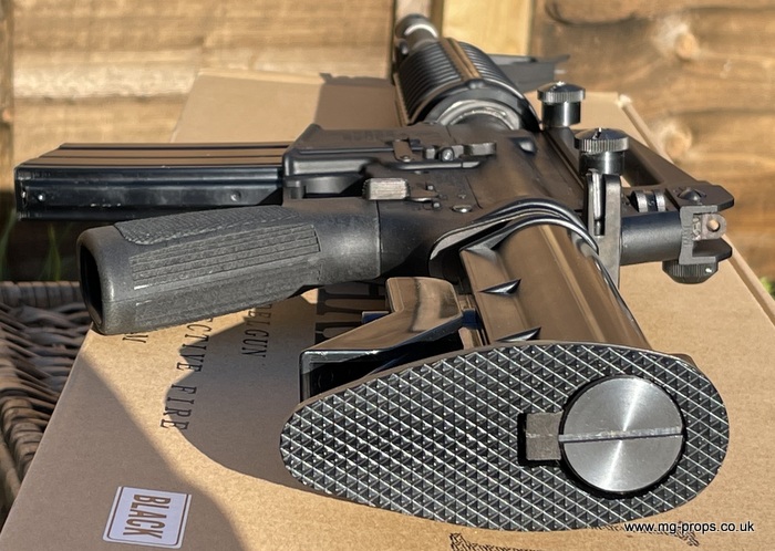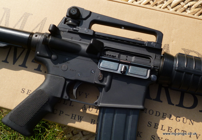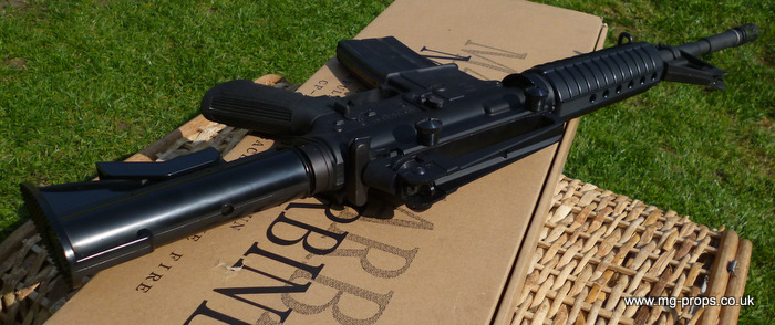 Practically in new condition / unused / unfired ! Functions / Fieldstrips like the real thing ! Superb weight and feel to it and is heavier than the real thing weighing in unloaded at 3 Kilograms! Fully upgradeable (see bottom of page) with M203 launcher, silencer, scope, bipods etc.. carry handle removes for attaching rail sights, scopes etc.. Please see `Accessories` below. Includes : Original box, Original instructions, Original take down tools, 1x box (10) MGC .223 reusable blowback cartridges (in new condition), 30rd magazine (in new condition), removable carry handle. No longer made, hard to come by...be quick!! Barrel can be made shorter / Commando length (please as for cost) We ship internationally. Any questions please let us know : sales@mg-props.co.uk