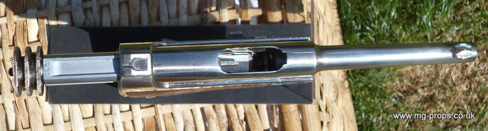 Originally gold now silver, chrome finish. Made in the 1990's. Good condition for year, not new - please see photos above. Includes: original box, original instructions, eight Hudson 8mm firing blowback cartridges, dry fire use only. Appears unfired, cartridges only showing dry fire use. We ship internationally with full online tracking. Please email with any questions or for a shipping quote : sales@mg-props.co.uk