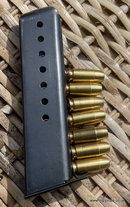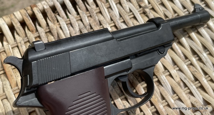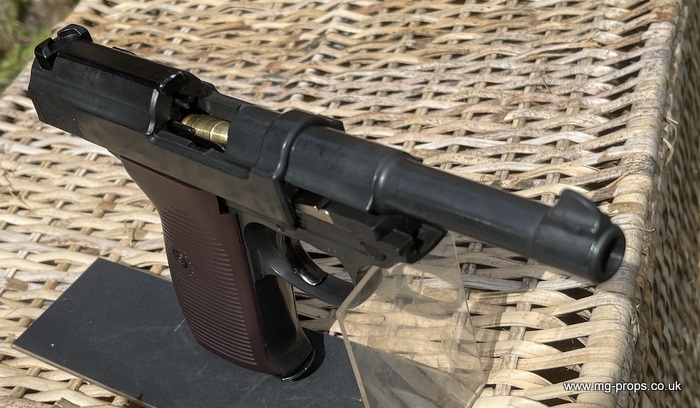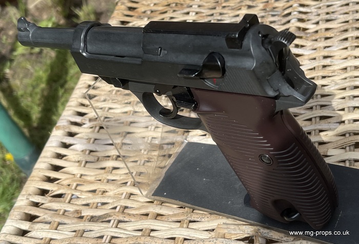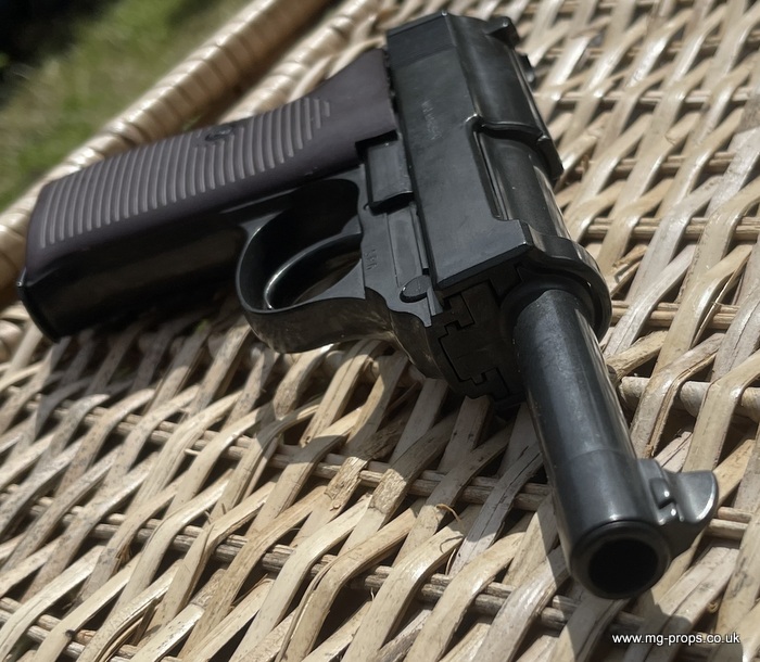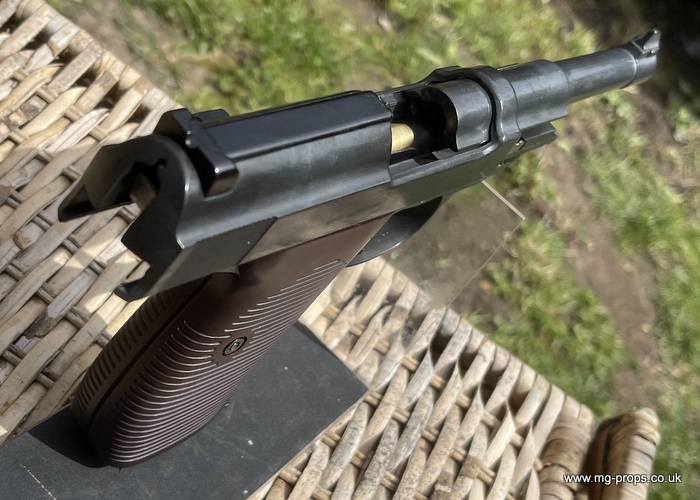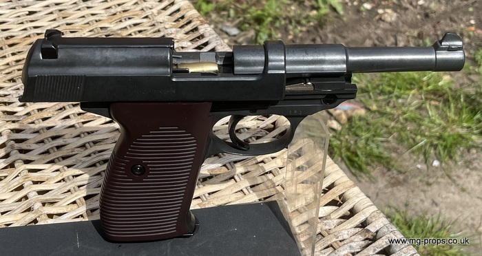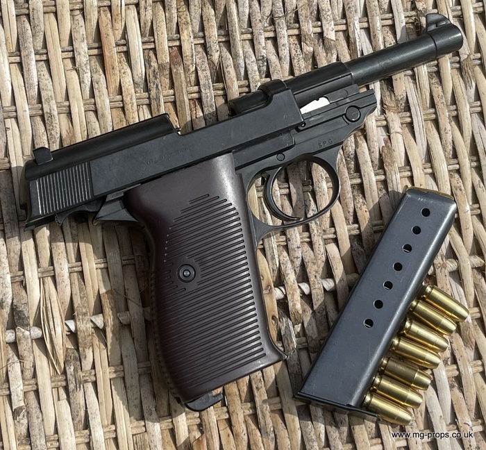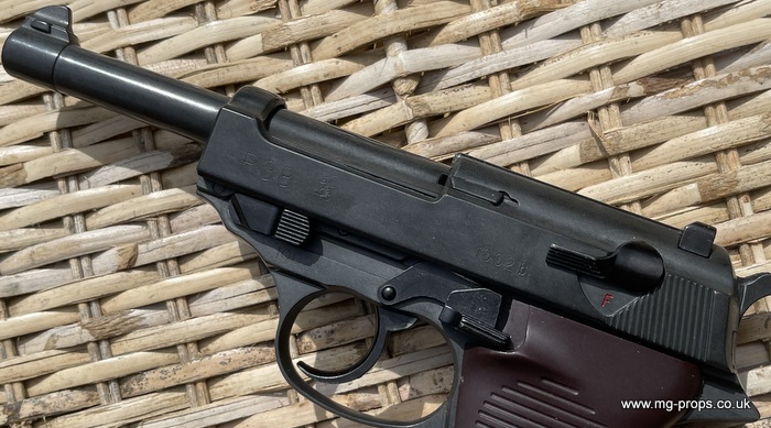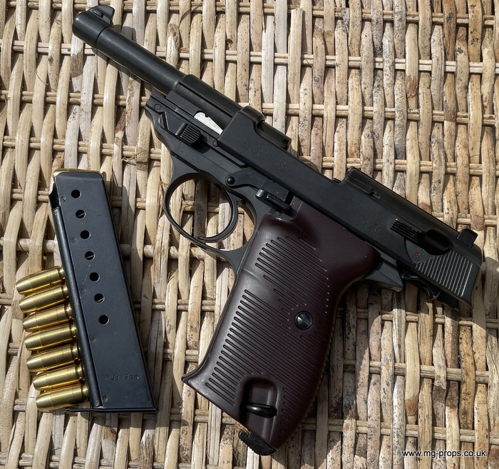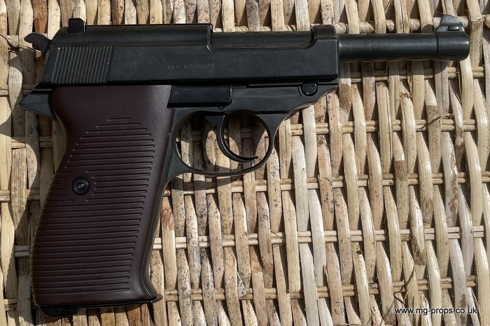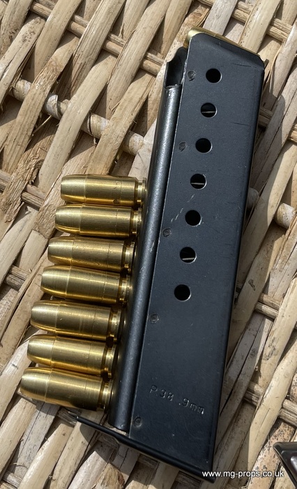 Marushin: WWII German Walther P.38 Military Excellent Heavyweight Last made in the 1980's / 1990's. The P.38 is in excellent condition, practically new / unfired ! Photos above of actual P38 for sale. Includes: Original box, original instructions, eight Marushin 9mm short blowback cartridges (reusable) in new unfired/new condition. Each cartridges takes a 7mm PFC primer cap (not included) Construction: Excellent Heavyweight version, metal magazine, trigger mechanism, and some internals. Approx Weight: 615g (unloaded) Magazine capacity: 8 Open barrel for venting Functions exactly like the real thing, field strippable We ship internationally. Any questions please ask away ! sales@mg-props.co.uk PFC Primer caps: £9.50 per box (1 box = 100 PFC caps) These are what makes the bang, smoke and creates the blowback to eject the shell Lockable