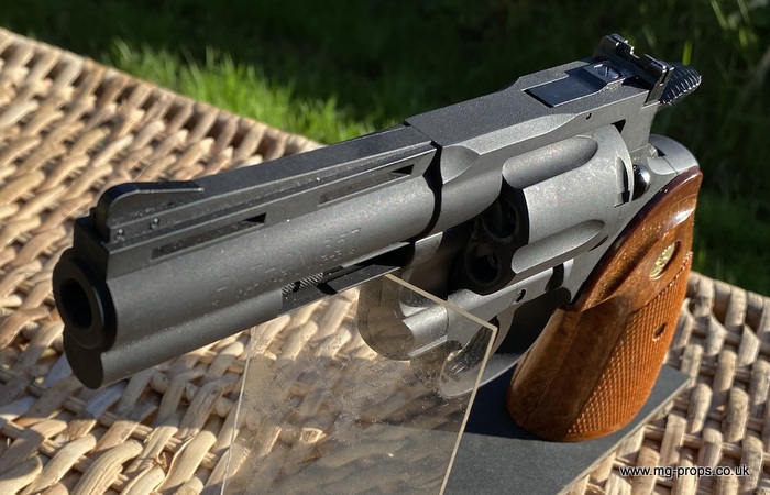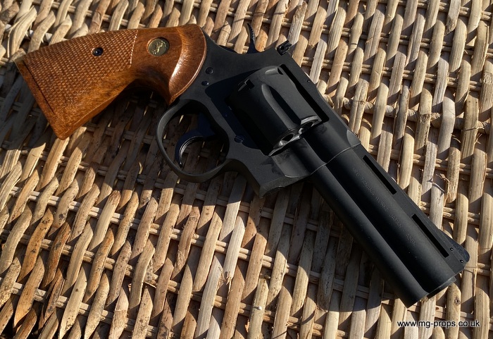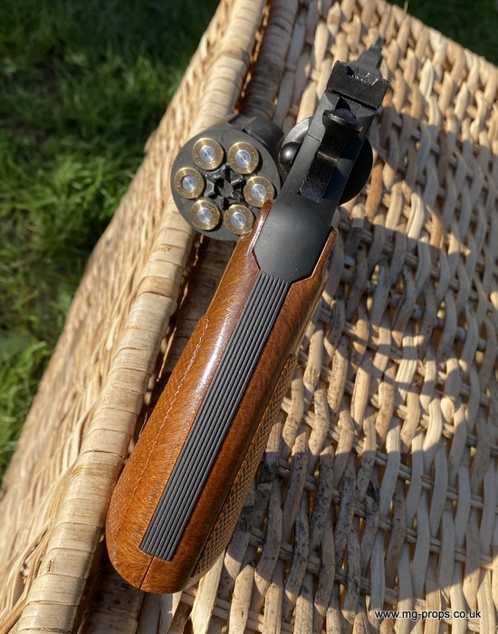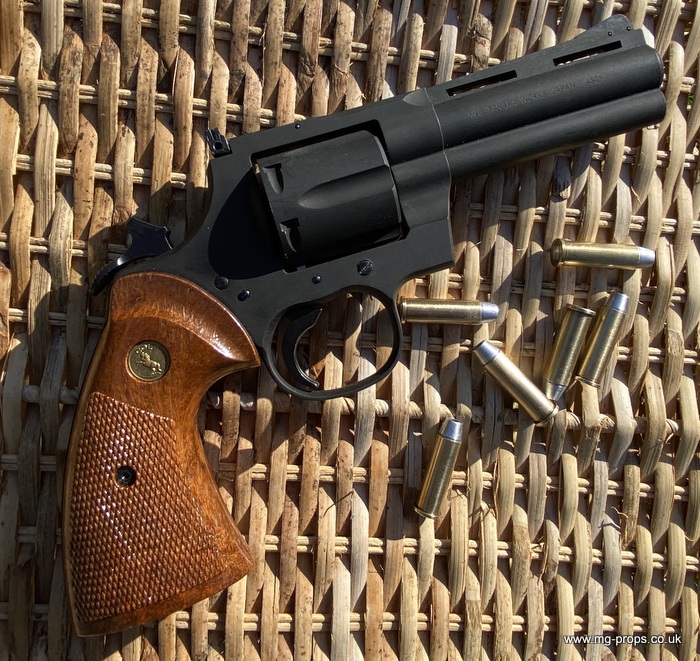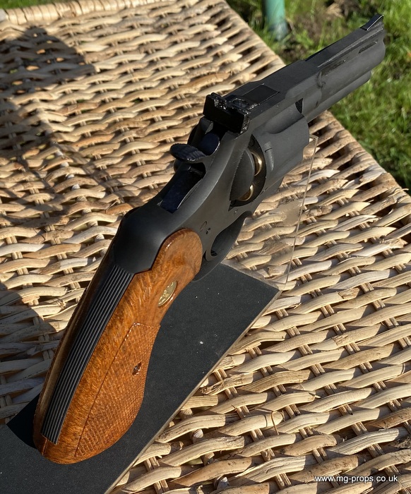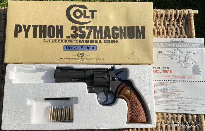 Tanaka Works: Colt Python .357 Magnum (Heavyweight) Light firing use Including: Original box, original instructions, six Tanaka Works.357 Magnum firing cartridges (had light firing use) (uses 7mm PFC primer cap) Weight Approx. : 815g (loaded) / 745g unloaded Barrel Length: 4in Construction: Heavyweight Abs and metal parts Open barrel for venting sparks and smoke Adjustable sight Swing out cylinder Very hefty Would make a great theatre prop PFC Primer caps: £9.50 per box (1 box = 100 PFC caps) These are needed to make the bang and smoke! Extra Firing Cartridges(6): £14.70 : Take 7mm PFC primer cap Real Wood Grips & Pachmayr grips: Please ask Lockable Aluminium Storage / Carry Case: £22.95 Great for storing or safe transport. Foam lined and lockable. We ship Internationally, please ask for shipping quote : sales@mg-props.co.uk Any questions please ask away. |