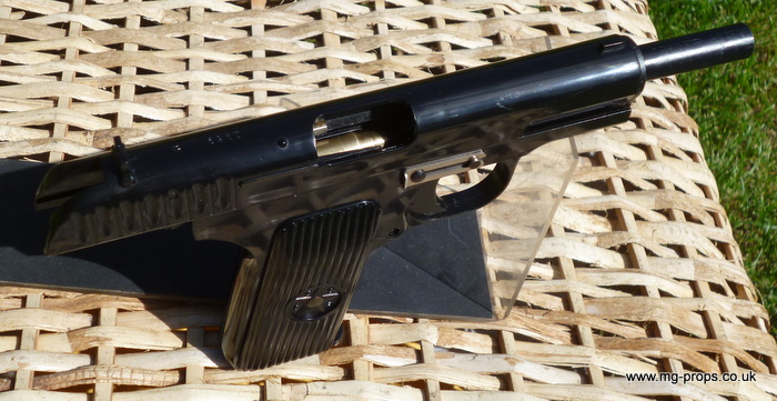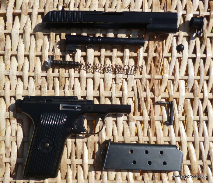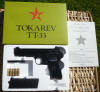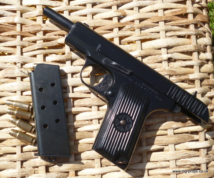 Brief info on the Tokarev TT-33 A mark of rank amongst the NVA and VC (indeed as in most armies) pistols and revolvers were carried by officers, political staff and occasionally by senior NCO's. The two most common weapons were the 7.62mm Soviet TT-33 Tokarev and the 9.5mm Makarov automatic pistols. First introduced in the 1930's and utilising the self-cocking design from Colt, the Tokarev TT-33 was used extensively by Soviet forces in WWII and was produced in nearly all Warsaw Pact countries and the PRC. There was no safety mechanism but the hammer could be locked at half-cock and the weapon was normally carried around with a round in the chamber. Production of the weapon in the USSR stopped in 1954, but continued in other Communist countries, notably the PRC. The pistol was widely used by VC and NVA officers. The Tokarev TT33 fired the Soviet 7.62-mm x 25 Type-P pistol cartridge. It operated on a recoil single action and was semi-automatic, feeding ammunition from an 8-round box magazine. Maximum ROF was 32-rpm and with a maximum effective range out to about 50-meters. Fieldstrips very much like a Colt M1911 .45